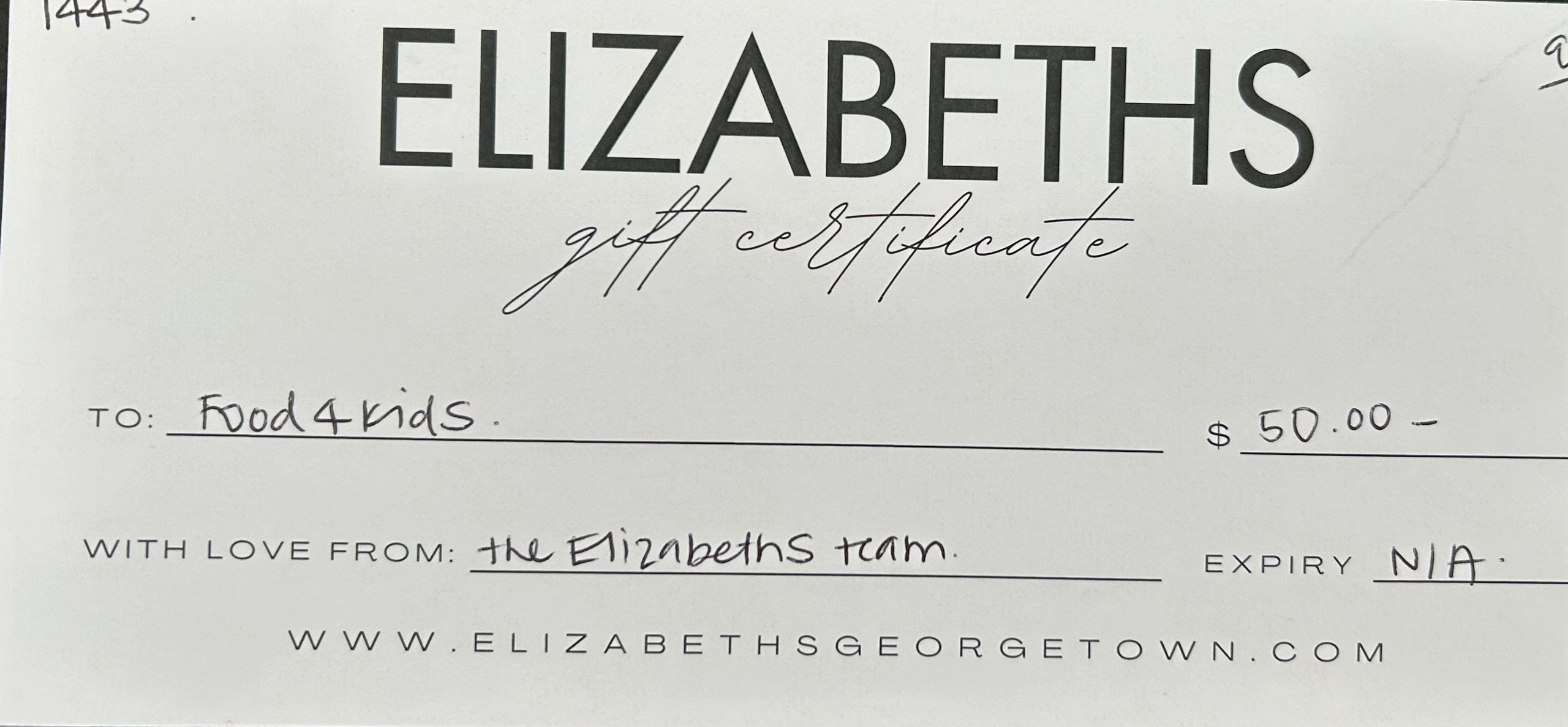 Prize 3: $50 Elizabeths Gift Certificate